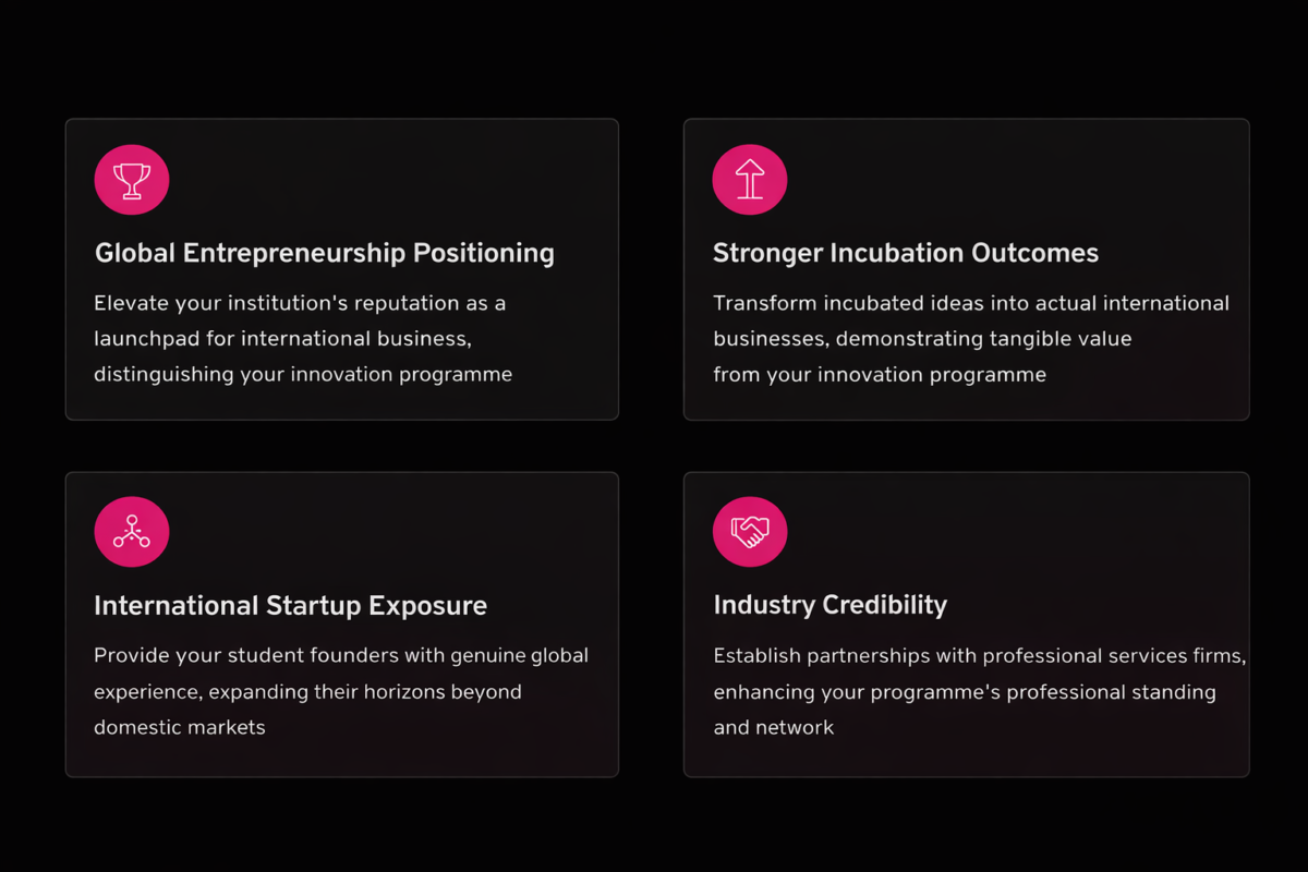 We provide the legal, regulatory, and operational infrastructure that enables student entrepreneurs to launch internationally from day one.